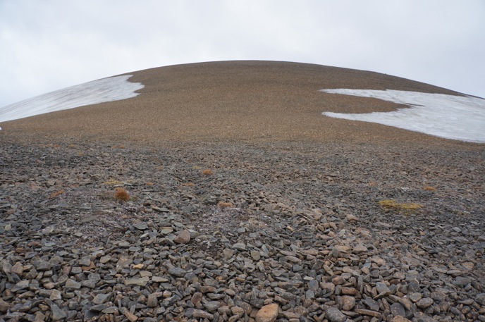 Breinosa, at about 600m it isn't many plants. The rocks are part of a vast block field. Up here only mosses and lichens grow (and the Svalbard poppy).