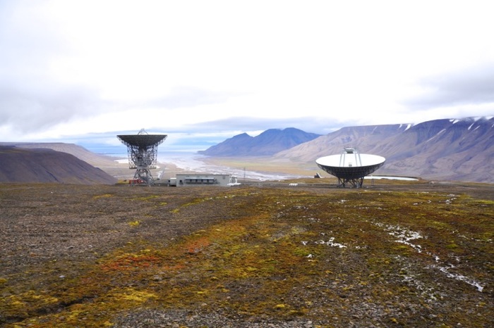 Hjortfjellet and Operafjellet (fjellet = the mountain). The EISCAT radar used to study interactions between the Sun and the Earth.