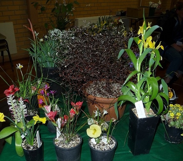 A dwarf bearded iris has overgrown the bulbs and provide some protection from summer rain ....and echidnas!
