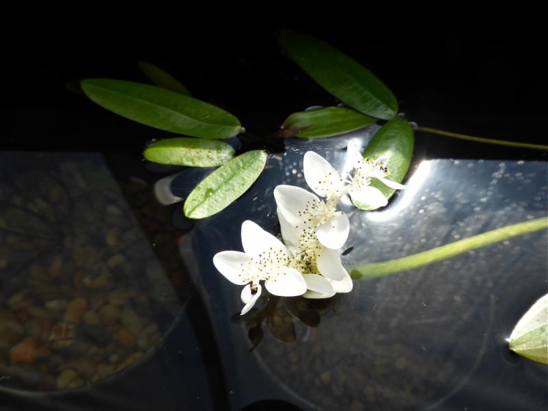 A few crocus popped open this weekend; Pulsatilla vernalis in bud; buds on Synthyris platycarpa; water hawthorn (Aponogeton distachyos) in the greenhouse: