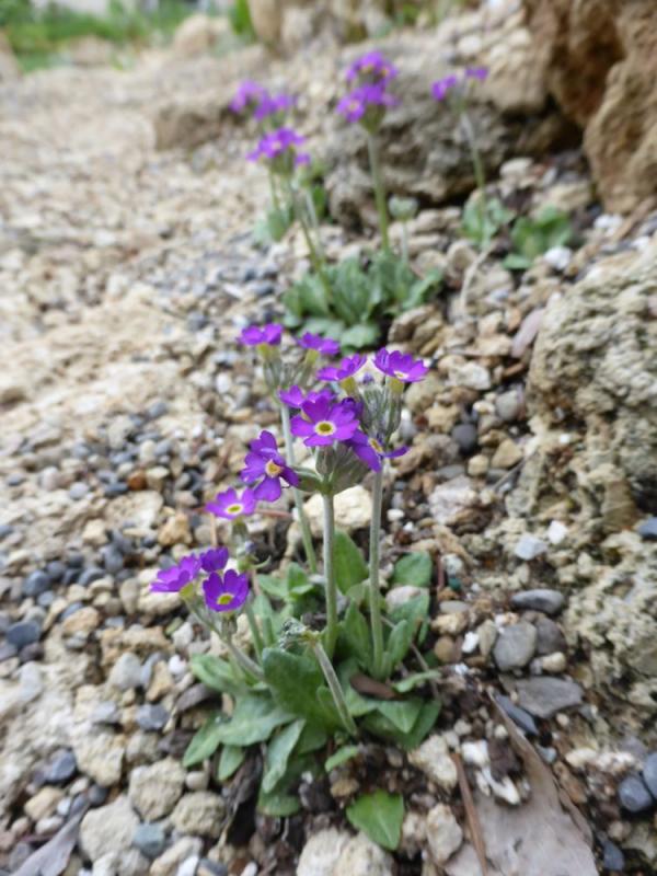 Lupinus lepidus v. utahensis, starting to bloom; Primula scotica still blooming; Aethionema saxatilis v. oreophila again: