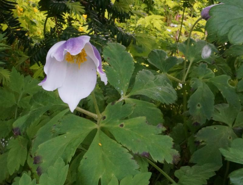 Allium triquetrum Anemone narcissiflora(?) pink form from seed several years ago - first flowers. Polygonatum prattii(?)