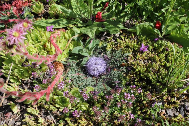 Delpinium beesianum (again); Monardella odoratissima v. odoratissima; some extremely old (perennial, that is) Campanula barbata; overhead view of Saxifraga cotyledon 'Pyramidalis':