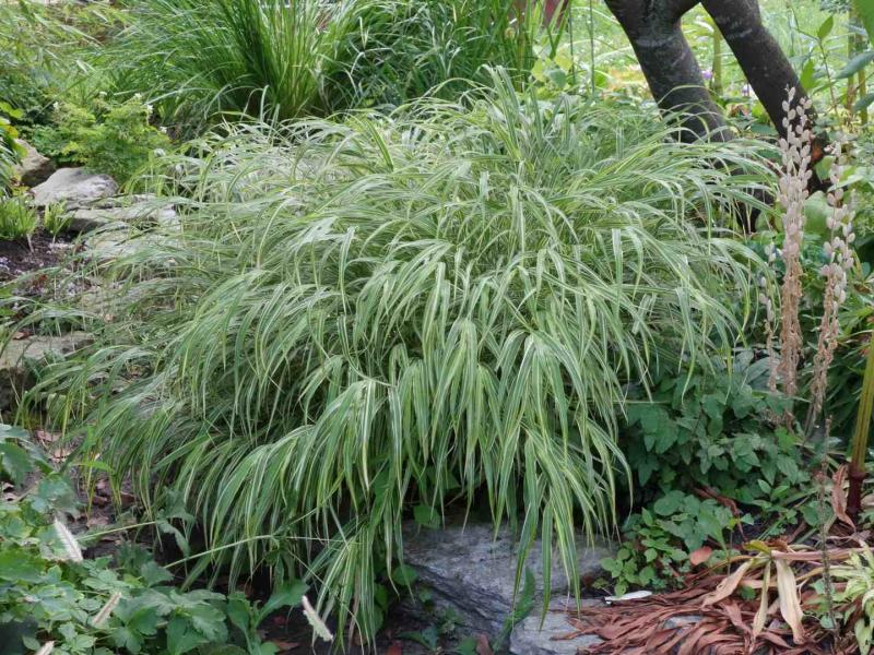 Hakonechloa macra 'Albo Striata' and Jovibaarba heuffelii