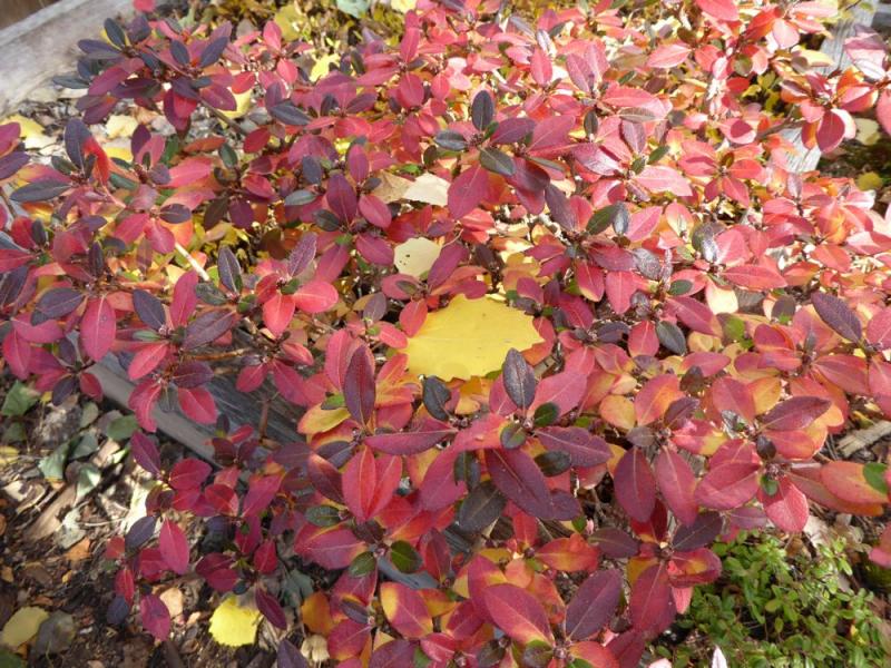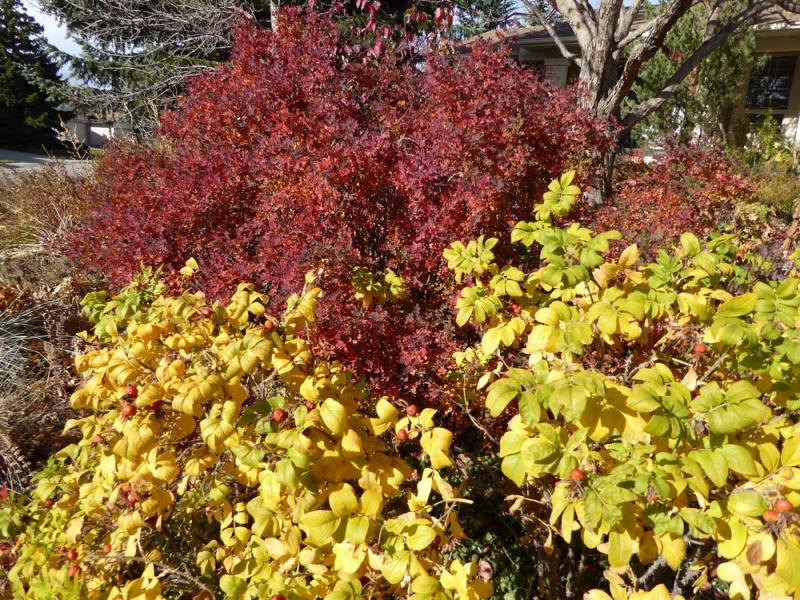 Tue, 11/11/2014 - 4:04pmThese abnormal seasons that we all seem to get now can really change the comparative growth chronology of species. My Kentucky Coffee trees (Gymnocladus dioicus) seen behind the American Smoke tree (Cotinus obovatus) normally drop their leaves long before the Cotinus, but not this year. For the first time in 24 years, my Tetradium(Euodia ) danielii actually had some fall color. Leaves always froze green on the tree in the past. Who knows, maybe this spring I'll get some normal looking flowers for the first time. Yet, the haskaps (Lonicera caerulea) had poor fall color, and the lilacs that usually hint of color in these long falls showed nothing this year. Perhaps 5% of the leaves on my bamboos ( Fargesia rufa ) were deciduous this year. That's never happened either, in their six years with me. "Normal" for me is to have most of them dry up in early spring.