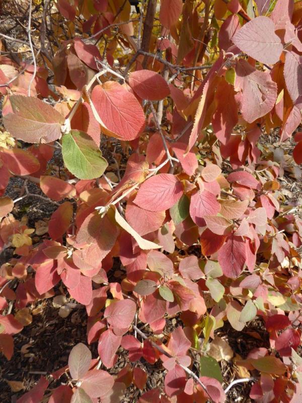Hamamelis virginiana blooms in late fall and produces its seed the following fall. Liriodendron tulipifera had the best fall color ever in 2014, but has now dropped its leaves. Cotinus obovatus usually has spectacular fall color, first turning maroon, then red, then red-orange. This year it was only red-orange, and only for a week instead of the usual 2-3 weeks.