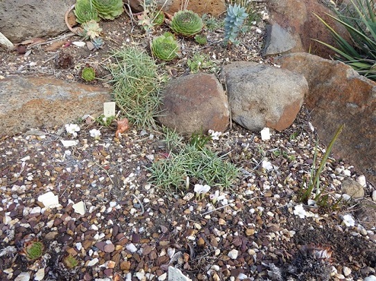 And Crossyne flava has burst through the gravel to come into flower in a matter of days
