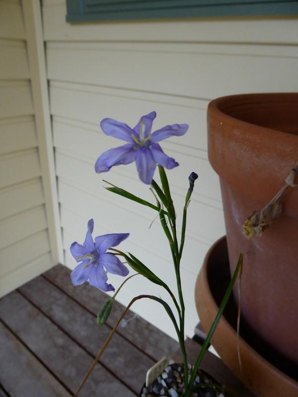Moraea polyanthos grown from NZAGS Seedex 2011, sown July 2012; first flowering this season