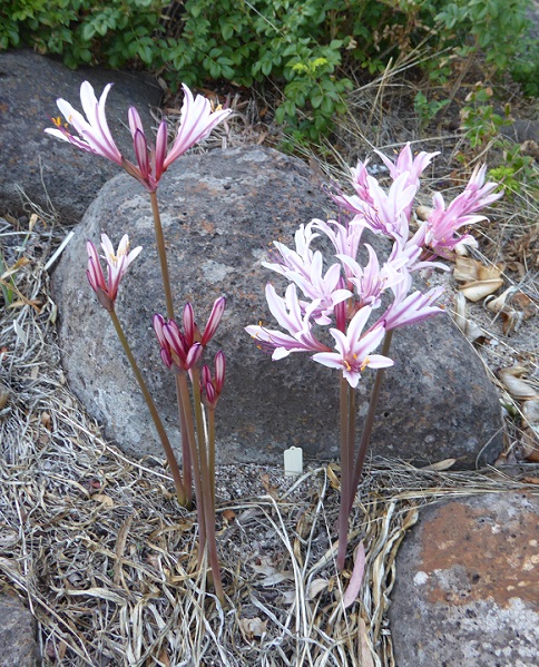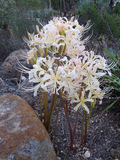Rhodophiala baffle me as well! It took ages for the original clone I had to get to flowering size but since then they have flowered regularly - except last year! This one is in a bed which gets summer water and I wonder if that is why it is in flower already (the other one is usually in flower in March when the weather has started to cool down)