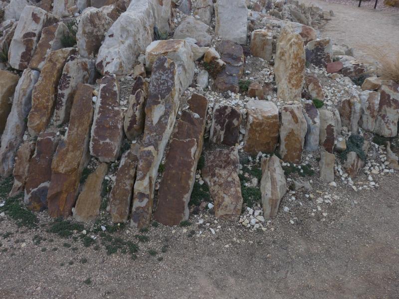 A few more pictures. How on earth do you get plants to grow in those tiny crevices? Since I volunteered to help with this, I think seedlings of plants like astragalus, pinned into place with a little binder added (so they're, like, glued there), will work.