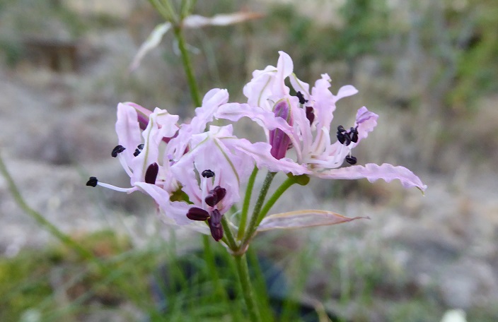 Nerines are still flowering: these are possibly Nerine humilis (previously N. flexuosa?) with the smaller one in the pot being Nerine crispa (now Nerine undulata)