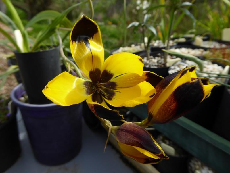 This is Moraea macrocarpa grown from seed from Gordon Summerfield in RSA in 2010; hopefully it is self fertile as it did not open when its sister seedling did!