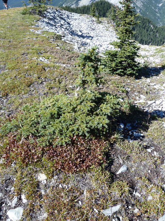 7) There are a few stunted limber pines (Pinus flexilis) on the ridge.