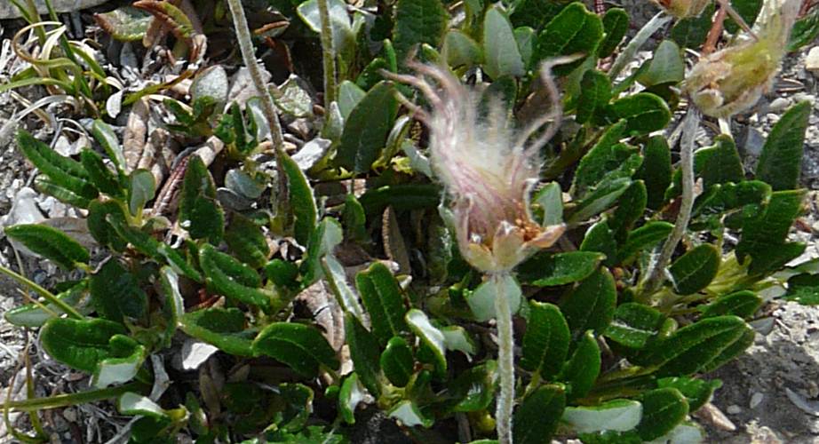 Note the very small, less toothed (integrifolia suggesting 'whole' as in untoothed, though there are still some teeth, but fewer and less visible than on octopetala)and recurved leaves. These plants are very small, and at this site at least, the patches are not large, maybe a foot or so across..