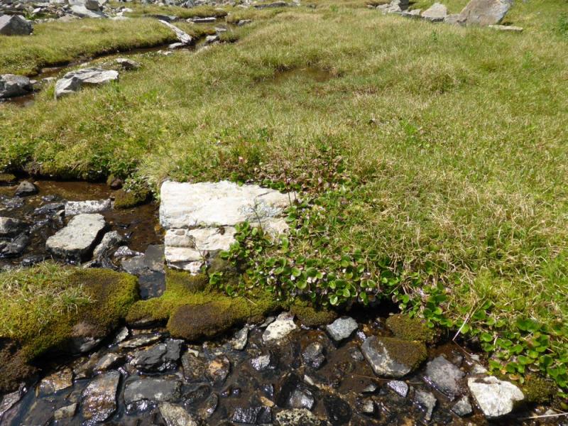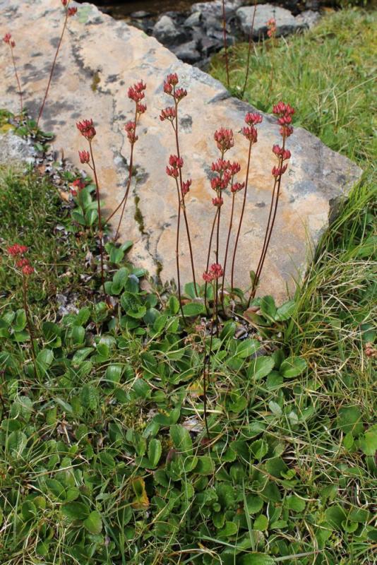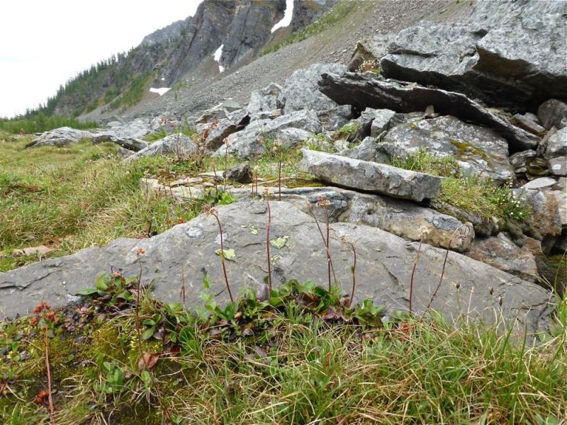 Here's Leptarrhena pyrolifolia in the wet meadows below Panorama Ridge, Banff N.P., Alberta. We were too late (photos taken in mid-July and early August) for the flowers, but the red ovaries provide a lot of colour.
