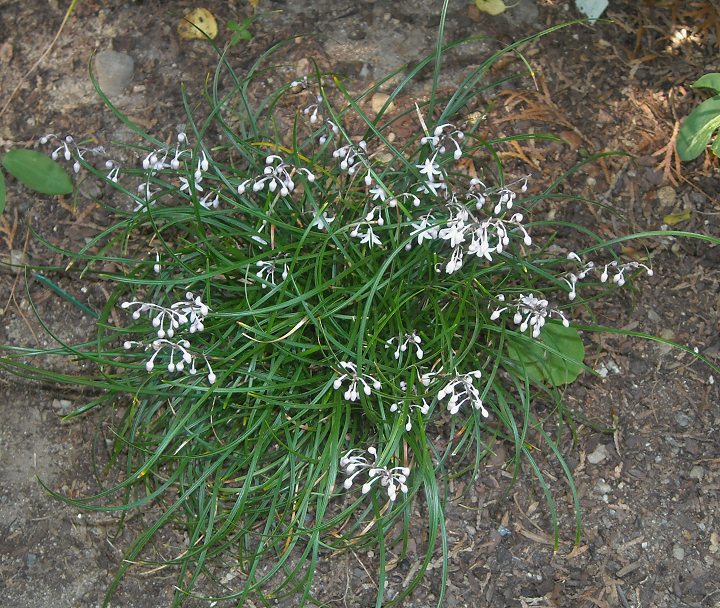 A small treasure has recently become popular, found in dozens of nurseries available on the web, the plant offered as O. chingii, from China. The problem is, if you check the botanical description of O. chingii in the online Flora of China, it is a complete mismatch for the plant being sold... O. chingii is a much larger and taller broad-leaf species. To try and thwart a misnomer so entrenched and well established in commerce is a daunting task, but we can all help to dispel the unfortunate error. I believe the plant in question, is actually Ophiopogon umbraticola.