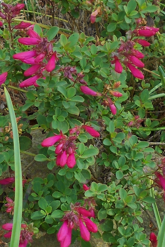 I'm hoping someone can ID this Penstemon sp. for me. It only grows a few inches high and spreads to 18 inches across. I'm unsure which diagnostic features are important in Penstemon, so can show more detail if it will help.
