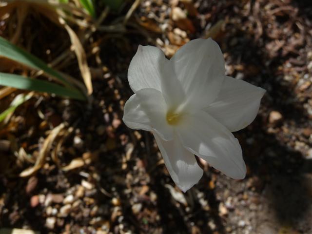 This white flowered rain-lily came up unexpectedly as the only label near it was broken and carried the letters "Habrant...brachya..." but I don't think it's a Habranthus. ???