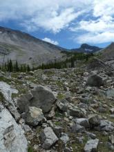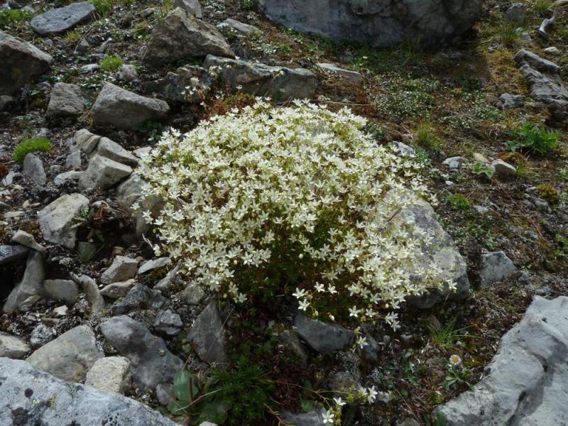 Forums: 17) Saxifraga, Heuchera and other SaxifragaceaeIn Kananaskis Country, AB, west of Calgary, early August - Saxifraga bronchialis ssp. austromontana and habitat view: