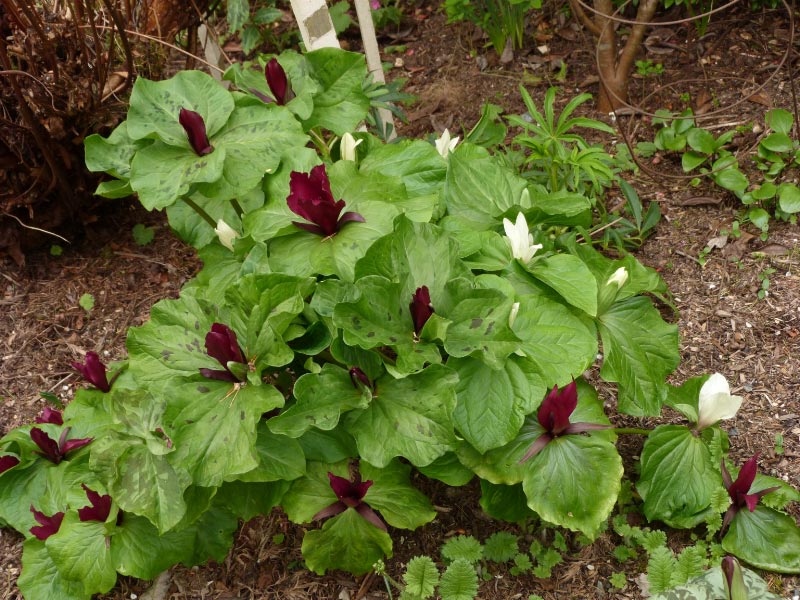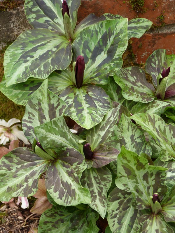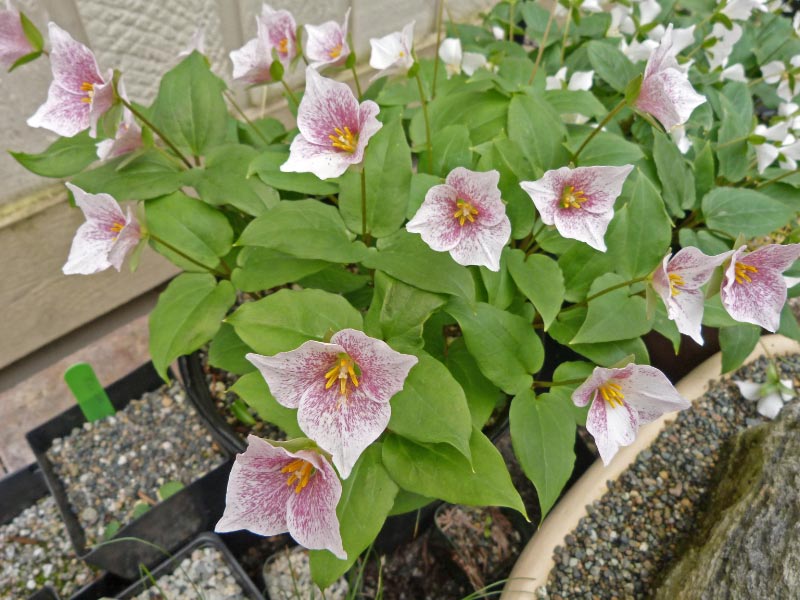 Several trilliums (and pseudotrilliums) are coming into bloom. They brighten our very soggy days -- since October 1, we've had rain 116 days out of 172 through today!