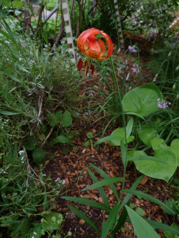 This lily bloomed for the first time this year from seed. Of course, I've lost the label. It resembles Lilium pardalinum but the leaves are wrong. Can anyone supply a name? Thanks! Plant Identification