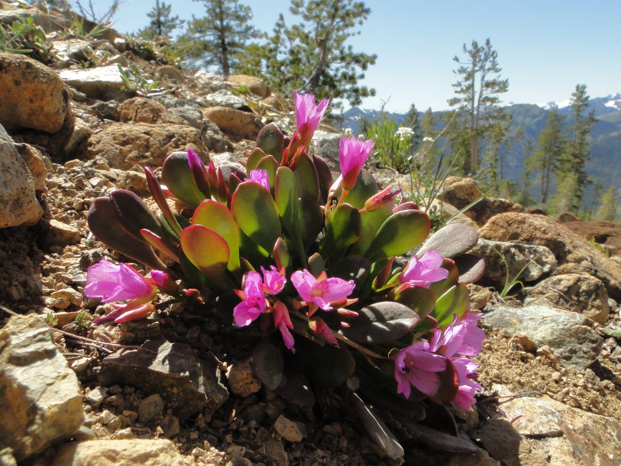 The Claytonia megarhiza v nivalis was spectacular on the summit ridge of Iron Peak and there were even a few Douglasia nivalis still in flower. The Claytonia and Douglasia were dotted around the serpentine scree together with Anenome drummondii , Castilleja elmeri and Ivesia tweedyi. We were fortunate to meet Richard Ramsden on the trail who pointed out some of the other Wenatchee endemics such as Lomatium cuspidatum.
