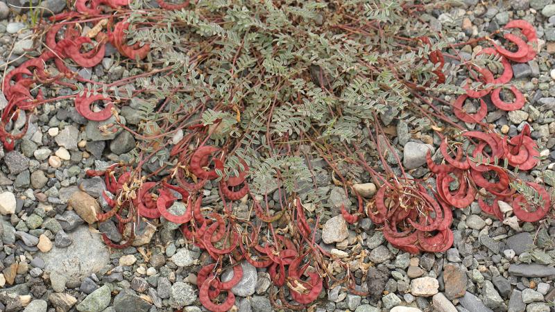 An amusing little plant on the gravel roadsides was Astragalus nutzotinensis with its C-shaped seed pods: