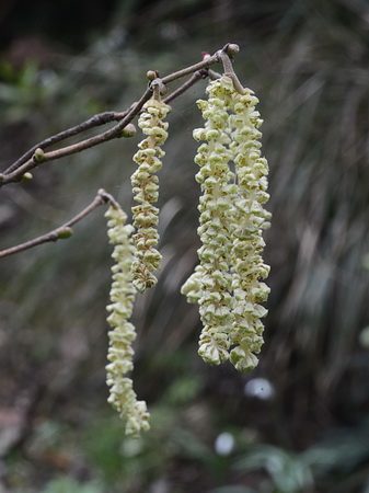 Hazel catkins Those of you with sharp eyes may see a female flower above the right hand male catkins