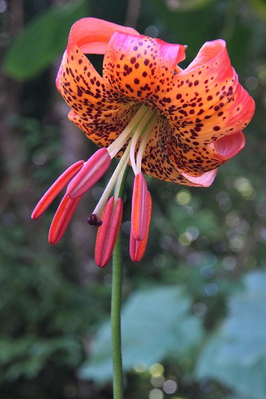 Lilium pardalinum .Looks like the clump needs dividing as there is a mass of vegetation and only a couple of blooms .