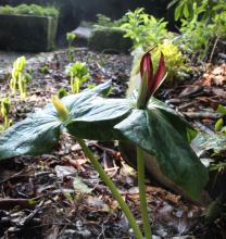 It's just about Trillium time.Most have noses in various stages of growth.I counted 4 plants today where the buds are starting to open.Here's Trillium angustipetalum just waiting for a little more heat .