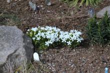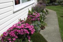 and in the rock garden an intermingling of a native Pimelea and hybrid Armeria