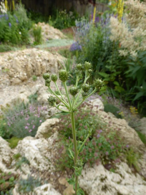 Any idea what this is? I grew this from NARGS seedex seed in 2012 as Saussurea nepalensis... which it clearly is not. The seedlings already looked "off" in the early days, compared to those grown by others here (and also by myself on a previous occasion). This year, I was bemused to see it send up an upright stem that has now topped out at ~1m (39"). Until these yellow flowers started opening, I could have perhaps continued to think it might be some sort of not-rock-garden-material Saussurea but my credulity is all used up now, LOL!