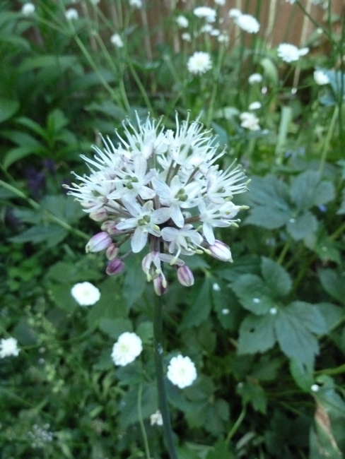With Allium victorialis, which I grow in several forms, the flowers are never truly white, they are more of an ochroleucus yellowish or greenish white, and they don't have any lavender or pink tinge. It is one of my favorite species. Trond, the photo link to emerging foliage of A. victorialis shows how beautiful the leaves are when emerging.