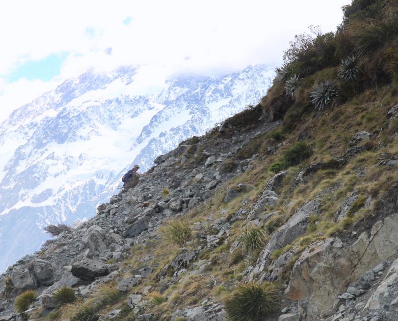 John ,another member of our group up high on eastern slopes with the massif of Mt Cook as a backdrop.