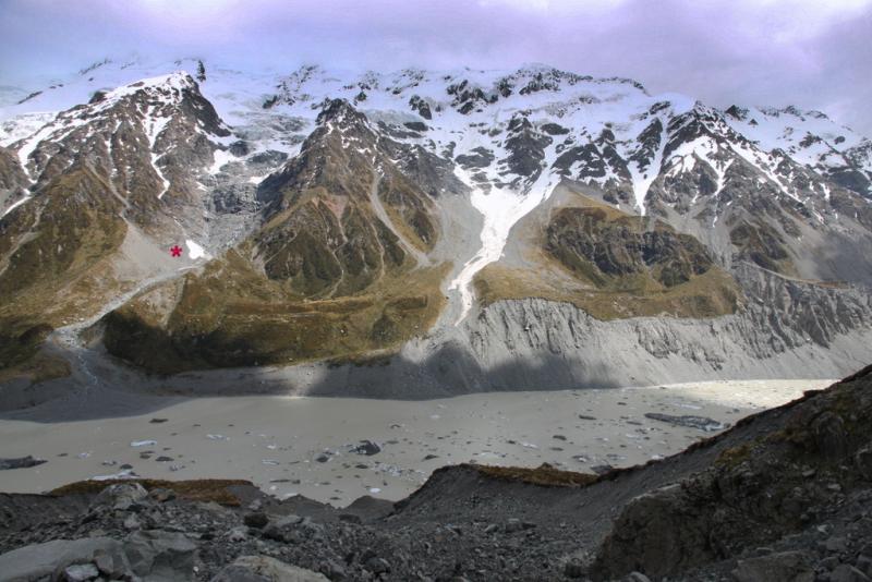 View into the Terminal lake of the 13k long Mueller Glacier.