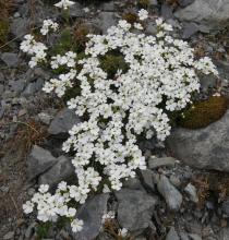 A trio of pics of Ranunculus lyallii --the clumps with the brown showing underneath the leaves being most attractive.