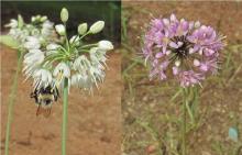 Tue, 10/08/2013 - 8:29amEven after heavy rains the last couple days, these two alliums look terrific, combined two images into one. Allium thunbergii - robust white form on the left, stellatum (from Carroll Co, Arkansas) on the right. Photos taken a couple days ago before rains, but with new sunshine today, they look pretty much the same, although there might be a different bee visiting ;-)