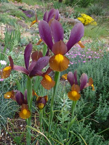 This was the image of the day for me - a decent clump of Dutch iris 'Thunderbolt' this morning in the drizzle!