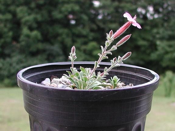 Back in 2000 I received seed from North American Rock Garden Society seedlist of Saponaria cypria collected in the Troodos Mts of Cyprus. It is a seldom encountered endemic species. Just to let everyone know, it turns out this gem of a rock plant is perfectly hardy and easy to grow. Not only that, it flowers in late July to August, when little else is blooming. Of course this year, with our season 2-3 weeks advanced, it is beginning to flower in early July (now). The plant makes low mats 1-2" (2.5-5 cm) tall, and abundant sprays of pink flowers on 4-5" (10-12.5 cm) stems, showing off those long red sticky-glandular calyxes, even after the flowers fade.