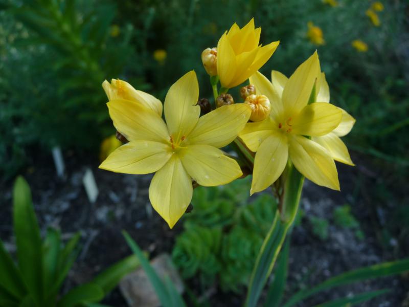 This one opened it's bloom snuggled down in the foliage making me think it was a Tristagma/Nothoscordum! It's actually the gold Zephyranthes flavissima