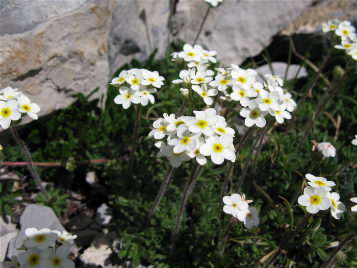 The common names - sweet-flowered androsace, rockjasmine - hint at another of its attributes... although it does take some hunkering-down to appreciate its pleasant perfume.