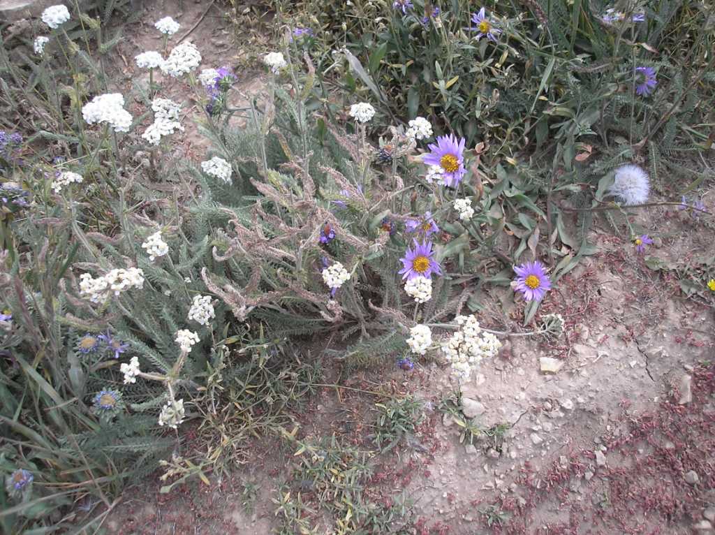 When viewing the Townsendia in the trough in Genera, Species, I scrambled to find a photo I’d taken September 1st 2008 in the Big Horns. At the time I wondered if the pretty blue flowers were a Townsendia species or Erigeron species. Not a great photo as it was the end of season and not much was in bloom plus the old digital camera!