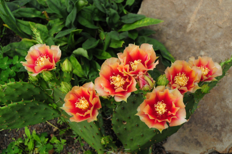 Opuntia ‘Mulberry Creek’ is a stunning selection with ombre orange-pink petals that bloom in early July. Hardy prickly pears have been a mainstay of the garden ever since I inherited a bunch of wild-type Opuntia humifusa from the green roof nursery. I got my ‘Mulberry Creek’ at Bristol’s Garden Center in Victor, New York, in 2018. Other opuntias that thrive in the garden include O. polyacantha ‘Crystal Tide’ (cream-colored petals with red filaments) and Opuntia fragilis (yellow flowers).