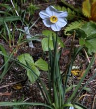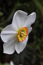 A few of the late Narcissus are coming into colour .Here's Narcissus poeticus 'Rondo'.