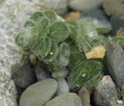 My seed for Arenaria tetraquetra from the 2013/2014 seedex gave me plants with woolly oval leaves. Quite interesting, but not at all like photos of the species that I've found online. It recently started blooming, with flowers much like those of A. grandiflora, so I think the genus might be correct. But which species?