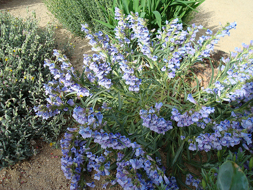 Penstemon speciosus is variable in appearance. Lower elevation forms have an open airy appearance, with greener coloration to the leaves. The higher forms are low, condensed with denser inflorescence,and a gray cast to the foliage. At altitudes of around 8000'-9000' around Lake Tahoe I have come across very dwarf forms may be six inches tall with gray foliage. Flower color varies some but blue through blue/violet are what I encounter most often. I do have one plant that has a pink hue.