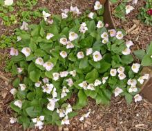 Several trilliums (and pseudotrilliums) are coming into bloom. They brighten our very soggy days -- since October 1, we've had rain 116 days out of 172 through today!