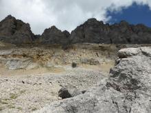 And, after a rather airy scramble up the headwall (with the thought that going up is easier than coming down causing a little trepidation!!), and crossing the waterfall stream, and up a talus slope... a bit of flattish ground for a lunch stop!