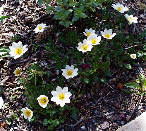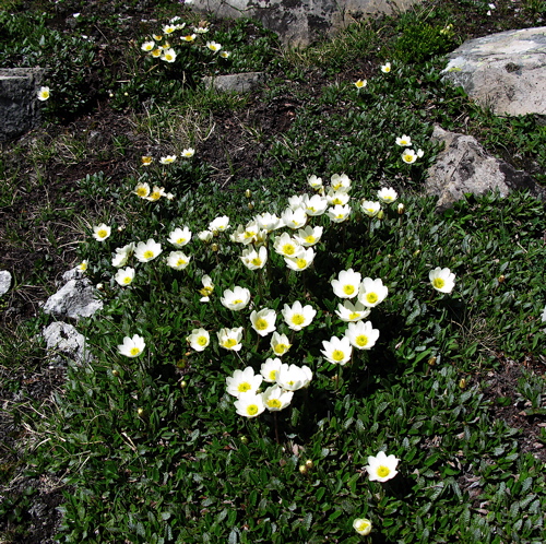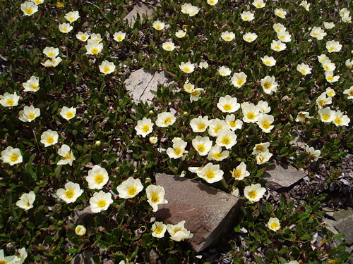Dryas octopetala is a very common and beautiful plant of alpine slopes in this area, and in addition, it has the delightful habit of repeated bloom through the season.