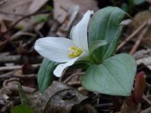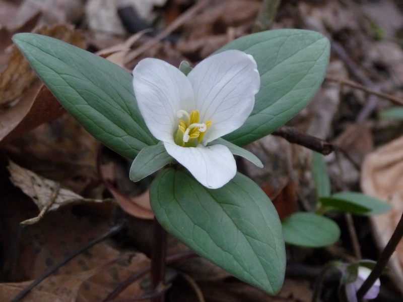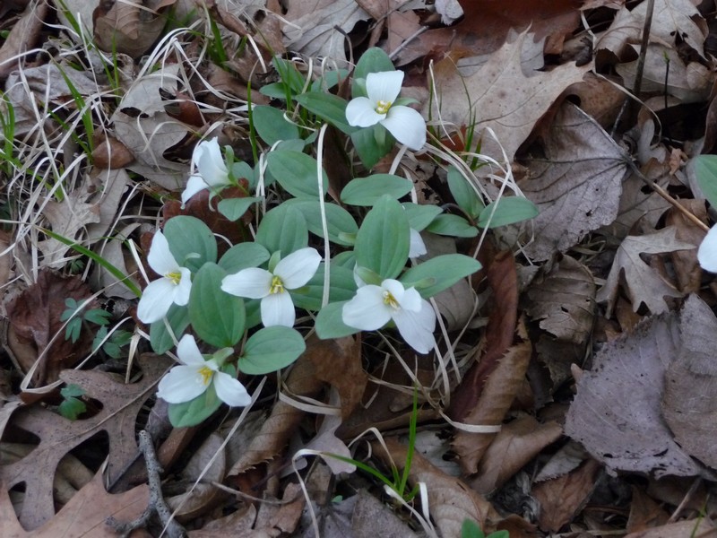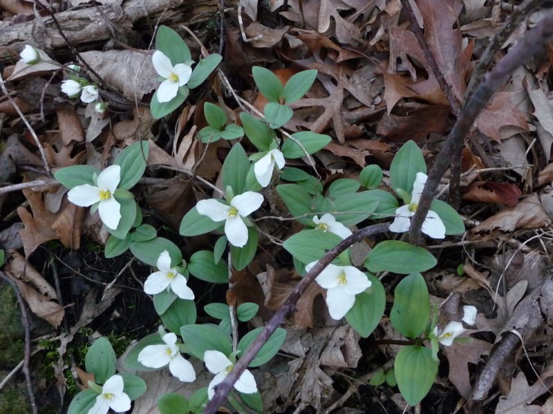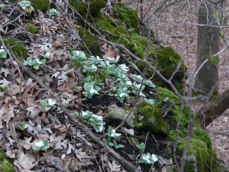The Snow trilliums have been out for a while already. The warm winter, or the hot spring, or both has produced the largest plants I have ever seen there in the ten years that I have been observing them. Although the plants are bigger, the flowers themselves are no larger than normal.